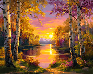 Diamond Painting - Lago de Abedules Dorados