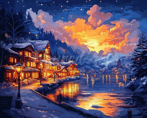 Diamond Painting - Pueblo invernal colorido