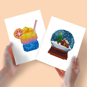 Mini Diamond Painting 15x20cm (2 piezas) - Smoothie de Verano y Bola de Nieve de Invierno