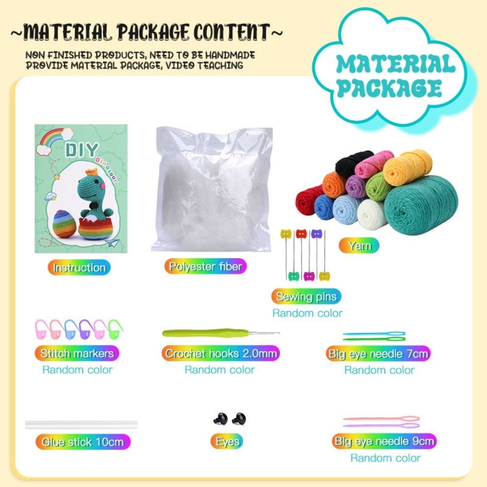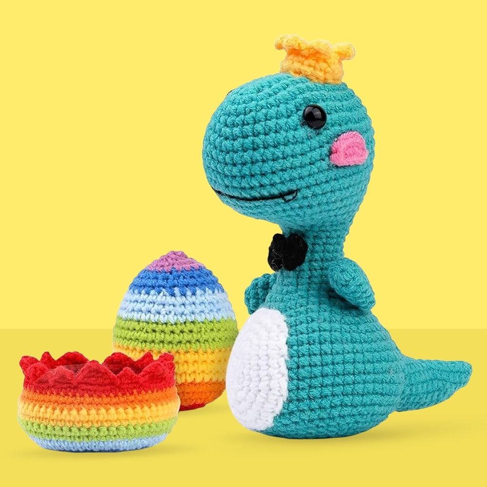 Kit Amigurumi - Rey Dino con Huevo Arcoíris Figured'Art