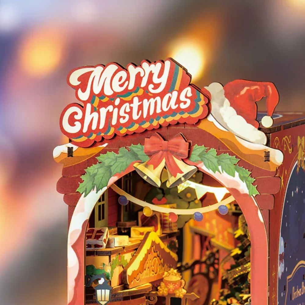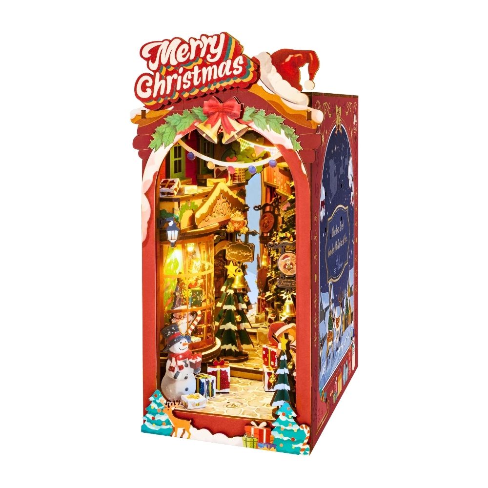 ¿Alguna vez has buscado el regalo de Navidad perfecto, ansioso por encontrar algo especial para tus seres queridos? Imagina caminar por una calle adoquinada bordeada de árboles cubiertos de nieve, mirando a través de las ventanas de las tiendas llenas de regalos coloridos. ¿Empiezas con el encanto juguetón de Fun Toys o los tesoros entrañables de Sweet Surprise? ¡Tu aventura festiva acaba de comenzar! Este espíritu de generosidad y emoción está bellamente capturado en el Book Nook Calle de Navidad. Da la bienvenida a cada espectador con luces centelleantes, decoraciones navideñas, regalos brillantemente envueltos y personajes queridos como Santa Claus, el muñeco de nieve y el oso de peluche. Ya sea que regales este diorama en miniatura festivo o lo montes tú mismo, te sumergirás en la calidez y la magia de la temporada navideña.