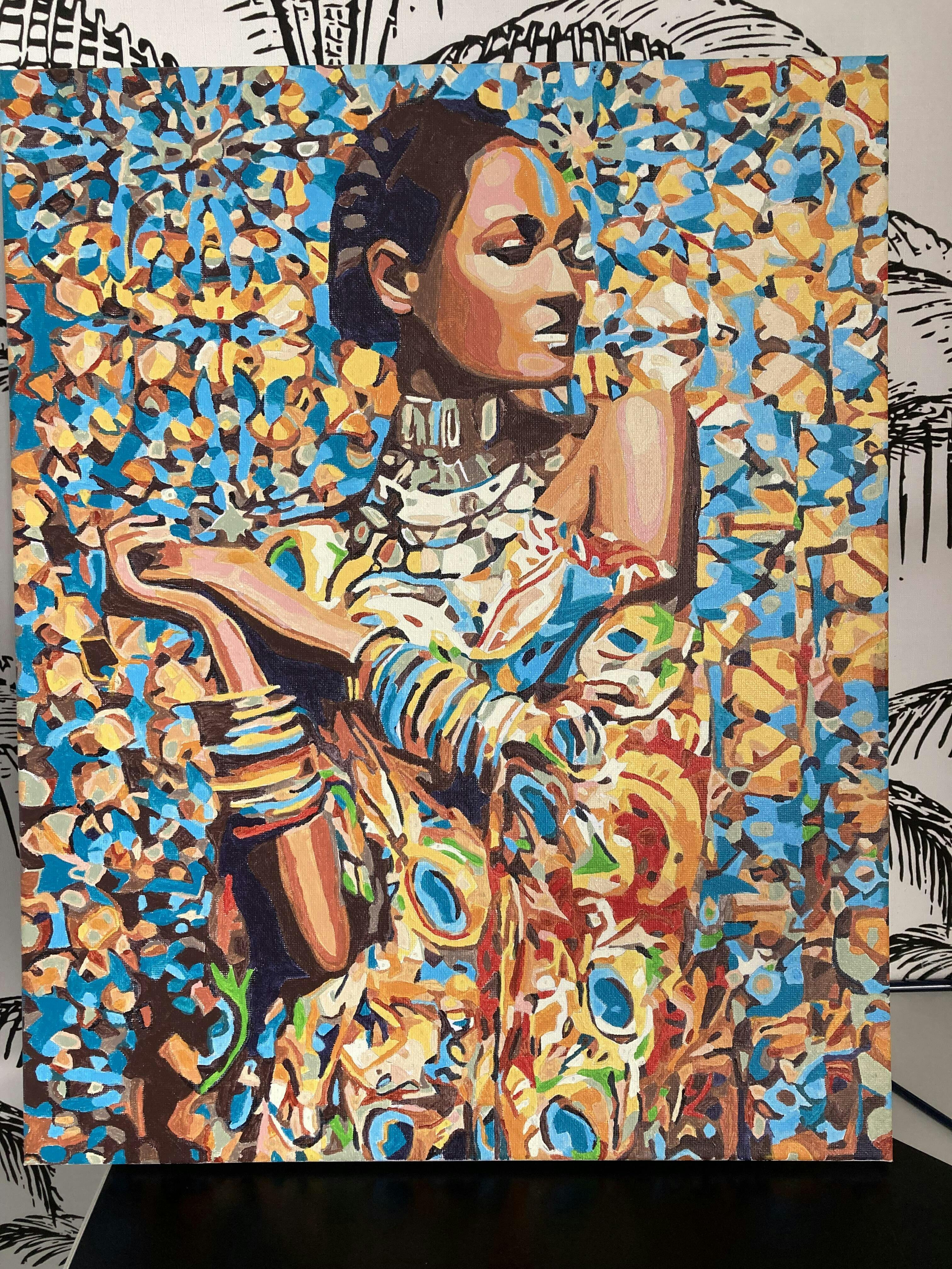 Kit completo de pintar por números con el lienzo estirado en un bastidor de madera ya montado. 100% listo para ser usado.