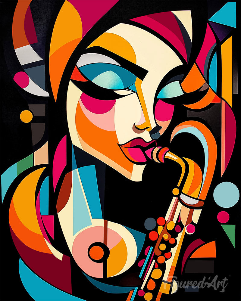 Modelo : Diamond Painting - Dama del Saxo Abstracta Audaz