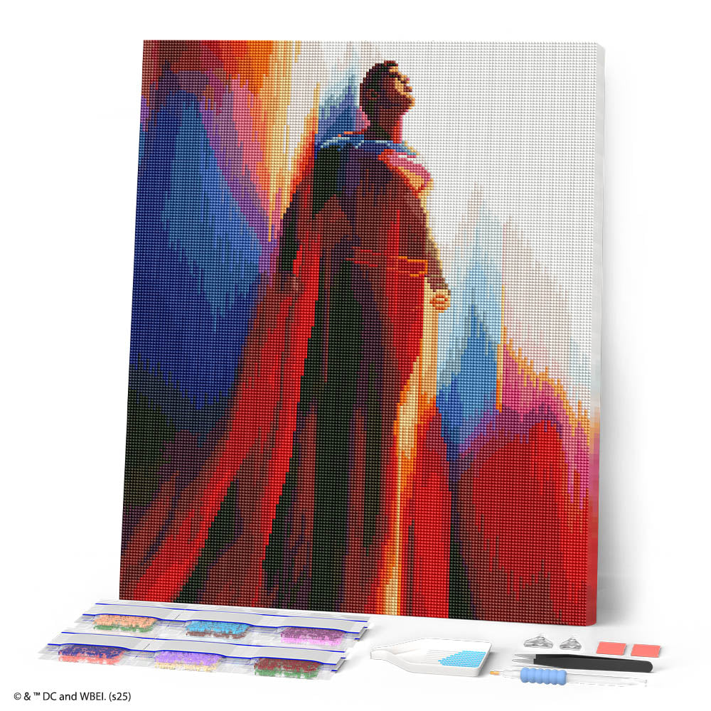 Sumérgete en el universo legendario de Superman con este kit de diamond painting bajo licencia oficial DC & Warner Bros. Tanto si eres fan de siempre como si lo ofreces como regalo, cada diamante colocado se convierte en un momento de relajación y creatividad y el resultado, una verdadera obra de arte brillante para colgar en casa.