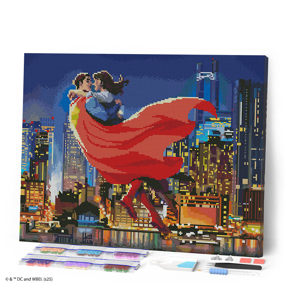 Sumérgete en el universo legendario de Superman con este kit de diamond painting bajo licencia oficial DC & Warner Bros. Tanto si eres fan de siempre como si lo ofreces como regalo, cada diamante colocado se convierte en un momento de relajación y creatividad y el resultado, una verdadera obra de arte brillante para colgar en casa.