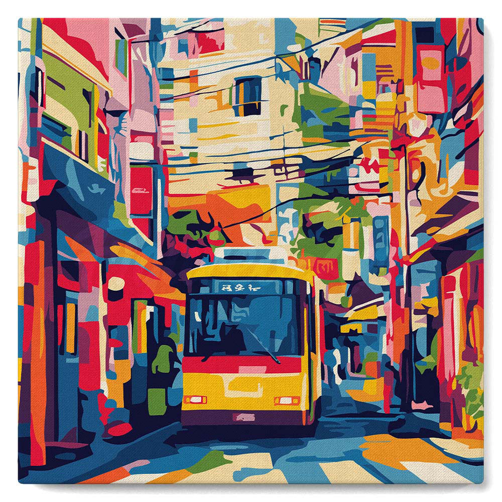 Modelo: Mini Pintura por Números 20x20cm con bastidor - Autobús Urbano de Tokio