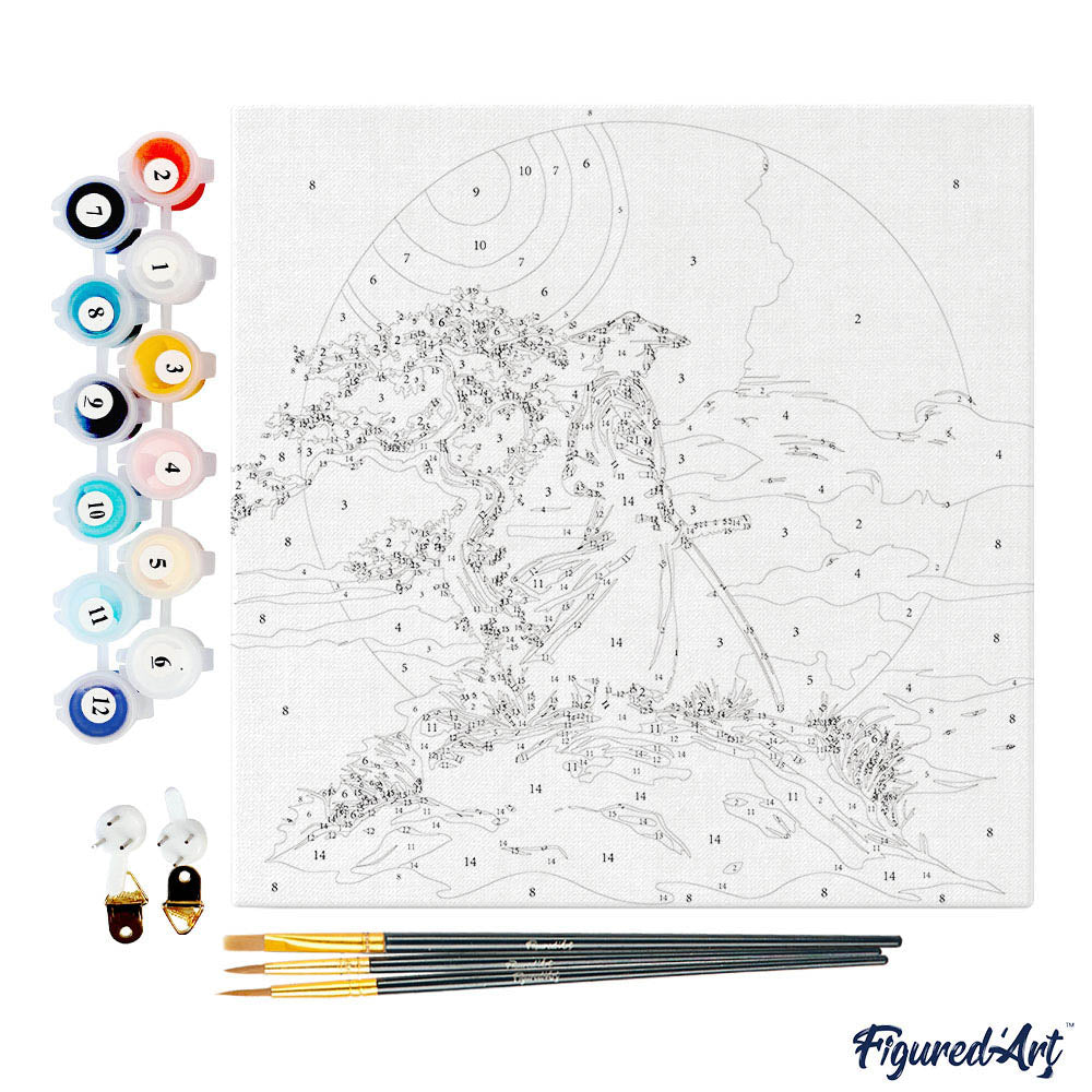 Modelo: Mini Pintura por Números 20x20cm con bastidor - Samurái al Atardecer
