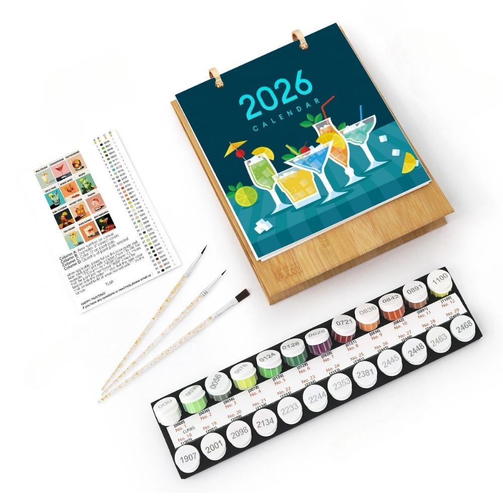 Agita tu año con creatividad gracias al Calendario Pintura por Números 2026 - Cócteles Clásicos.