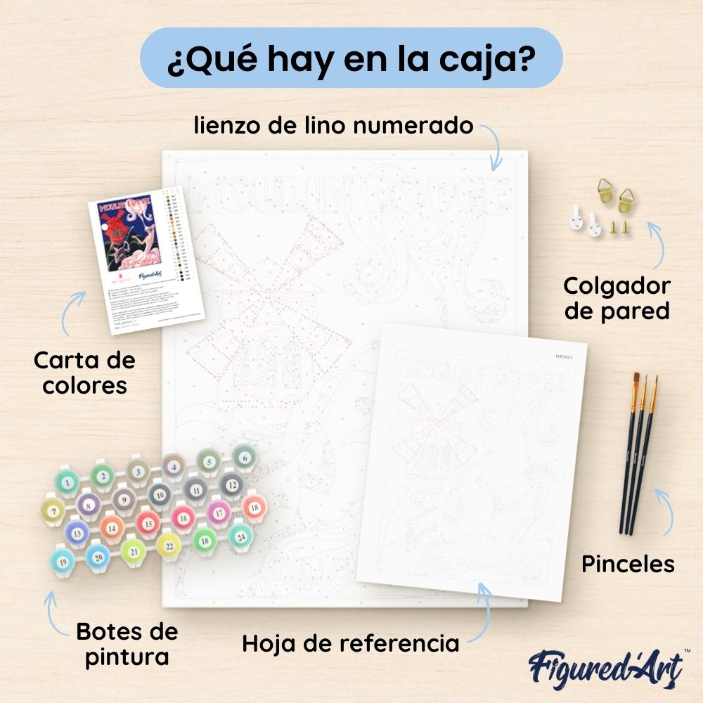 Este kit de pintura por números contiene todo lo necesario para realizar tu obra de arte: