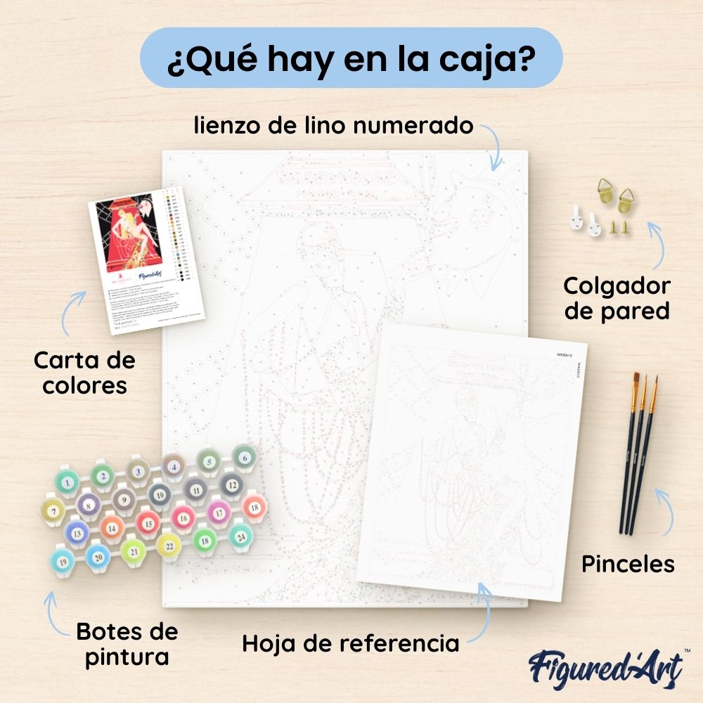 Este kit de pintura por números contiene todo lo necesario para realizar tu obra de arte: