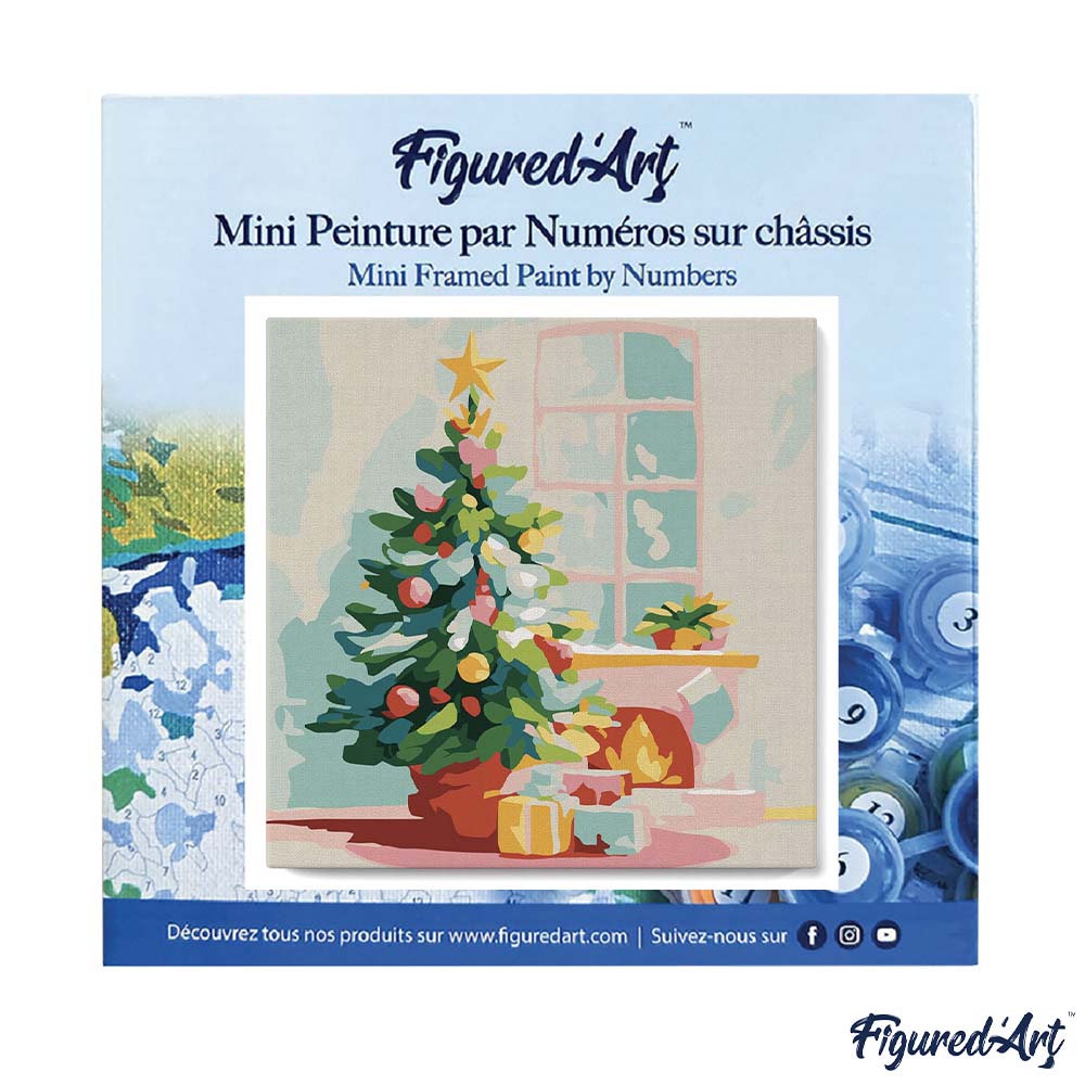 Modelo: Mini Pintura por Números 20x20cm con bastidor - Árbol de Navidad y chimenea