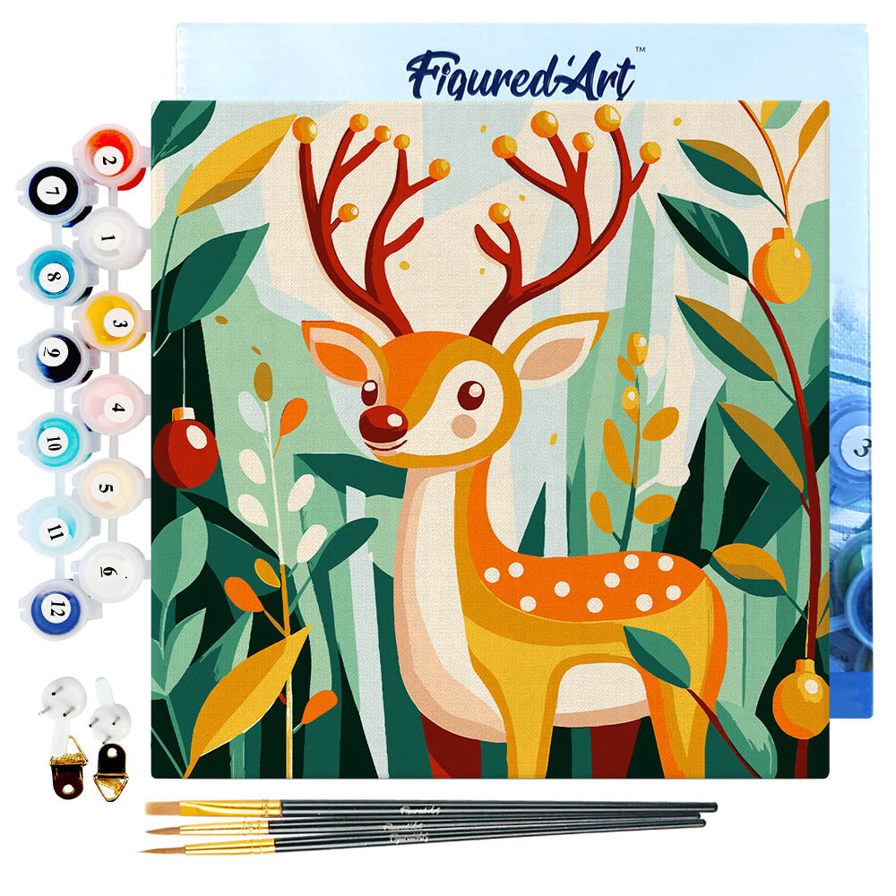 Modelo: Mini Pintura por Números 20x20cm con bastidor - Reno dorado