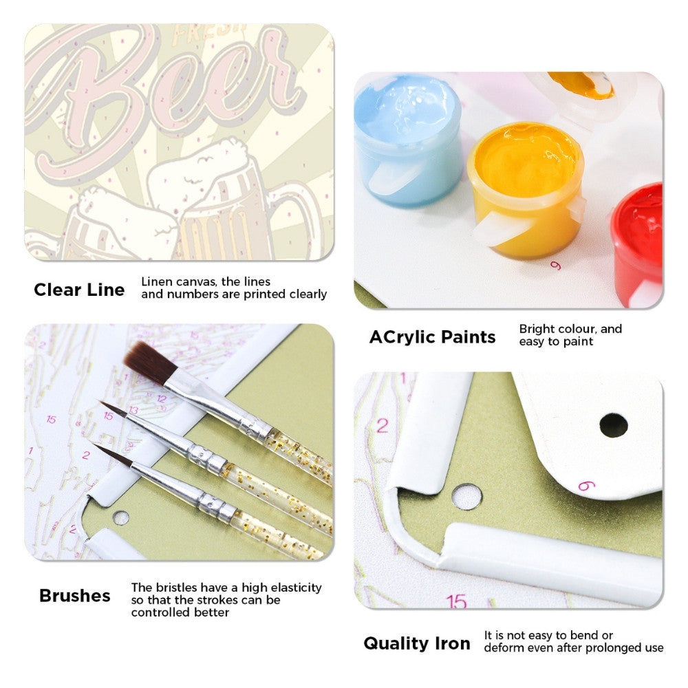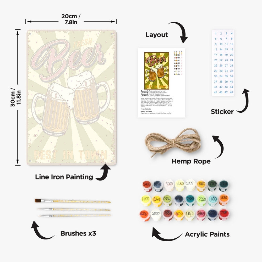 Añade un toque de encanto vintage de pub a tu espacio con esta lámina de pintar por números adultos de Figured'Art. Cada póster de metal con pintura por números presenta un diseño retro nítido que evoca la acogedora atmósfera de un pub clásico. Perfecto para amantes de la cerveza y entusiastas de las manualidades. Este kit de pintura ofrece una forma divertida y relajante de crear tu propio arte mural estilo pub. Una vez que completes tu obra, puedes colgar fácilmente el póster usando la cuerda de cáñamo incluida o fijarlo con tornillos (no incluidos). Ideal para decorar bares, pubs, garajes, cocinas o cualquier rincón donde se reúnan amantes de la cerveza. Disfruta de un hobby creativo mientras añades personalidad a tu espacio. 🍺
