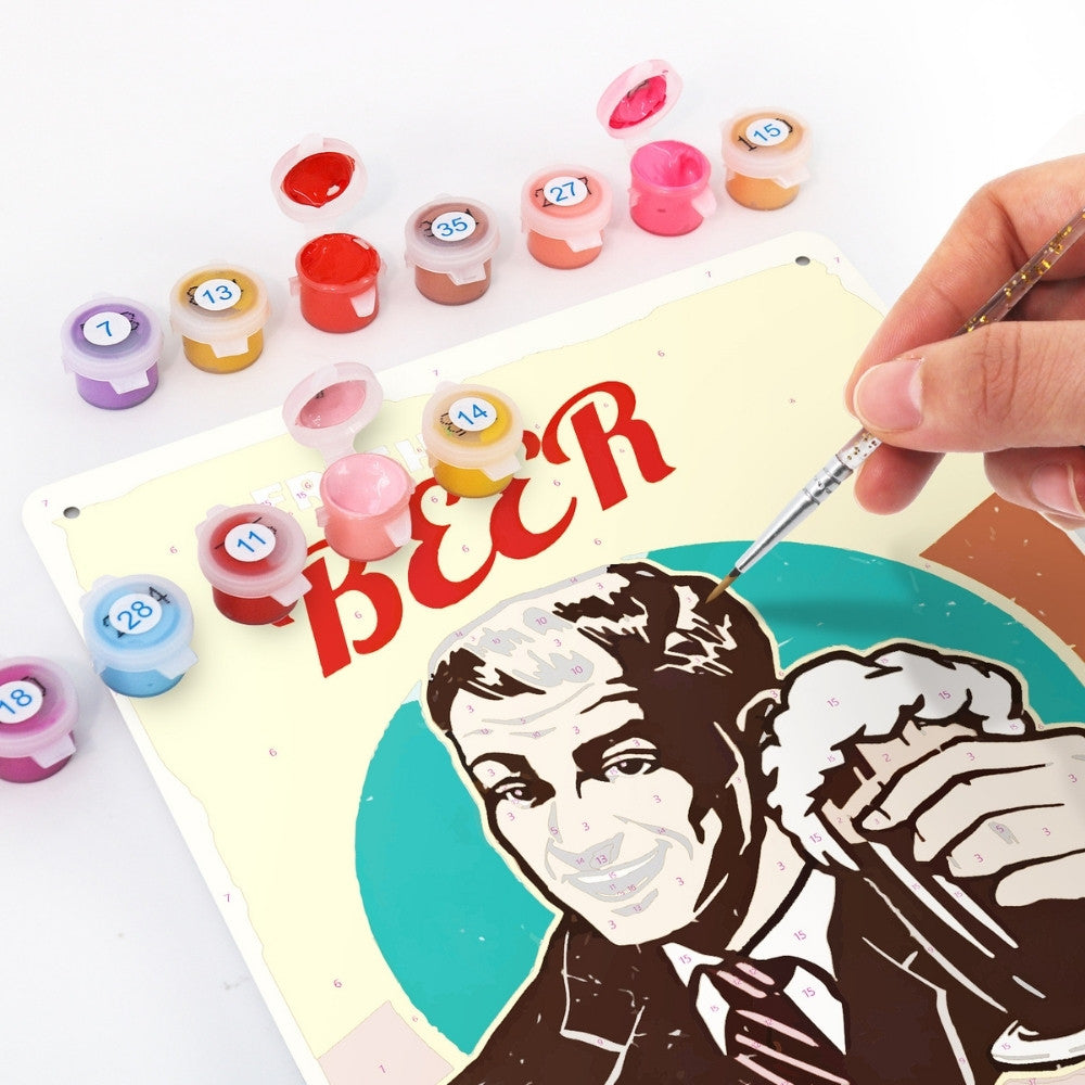 Pintar por Números Póster Metálico - Chico de Cerveza Fresca