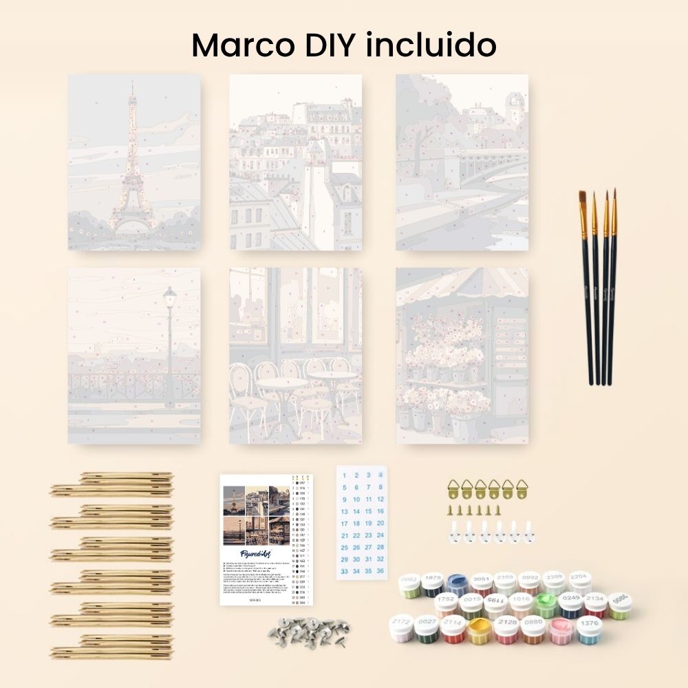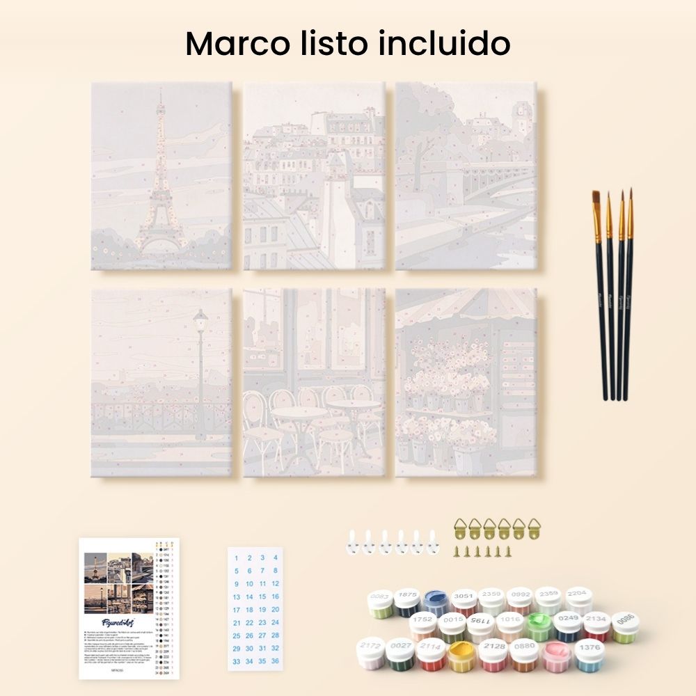 Con el set Encanto de París, descubre seis diseños de pintar con números que capturan el encanto romántico de la capital francesa. Monumentos icónicos como la Torre Eiffel, acogedores cafés y vistas impresionantes desde los tejados de la ciudad se representan con un toque artístico único. Cada pieza refleja la elegancia, el romanticismo y la belleza atemporal que hacen de París un lugar inolvidable.