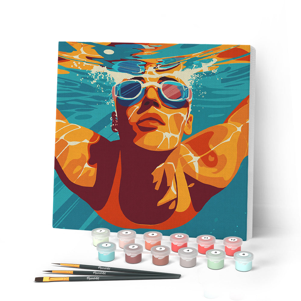 Modelo: Mini Pintura por Números 20x20cm con bastidor - Póster Deportivo de Natación