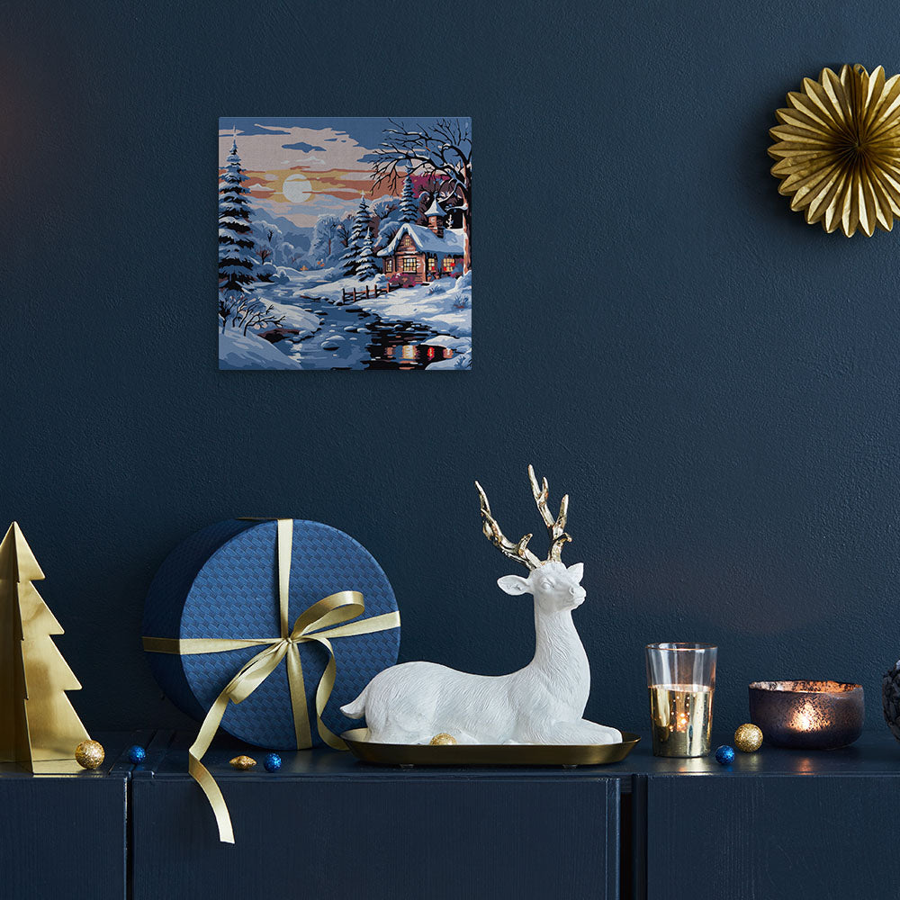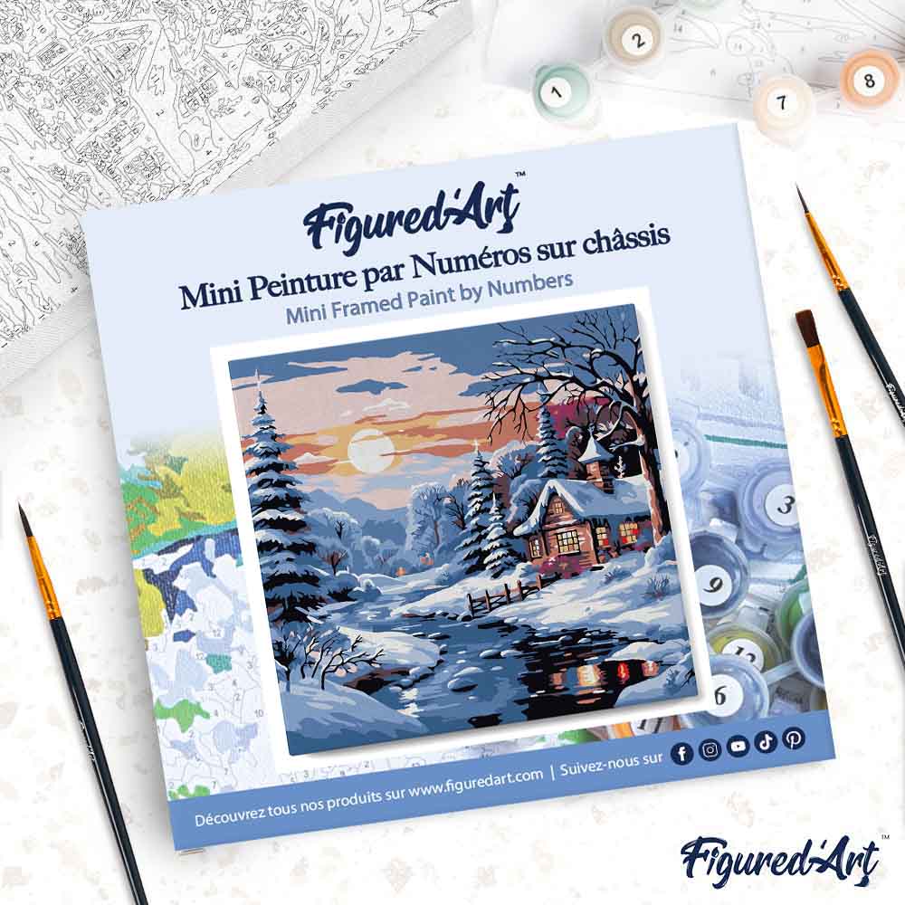 Mini Pintura por Números 20x20cm con bastidor Encantadora Cabaña Invernal