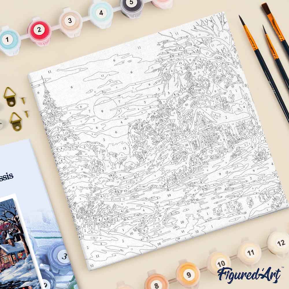 Mini Pintar por Números 20x20cm con bastidor Encantadora Cabaña Invernal