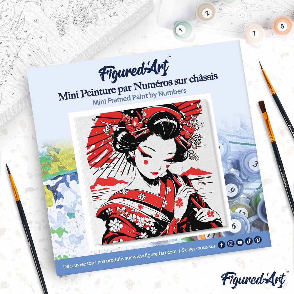 Mini Pintura por Números 20x20cm con bastidor - Geisha Roja y Negra