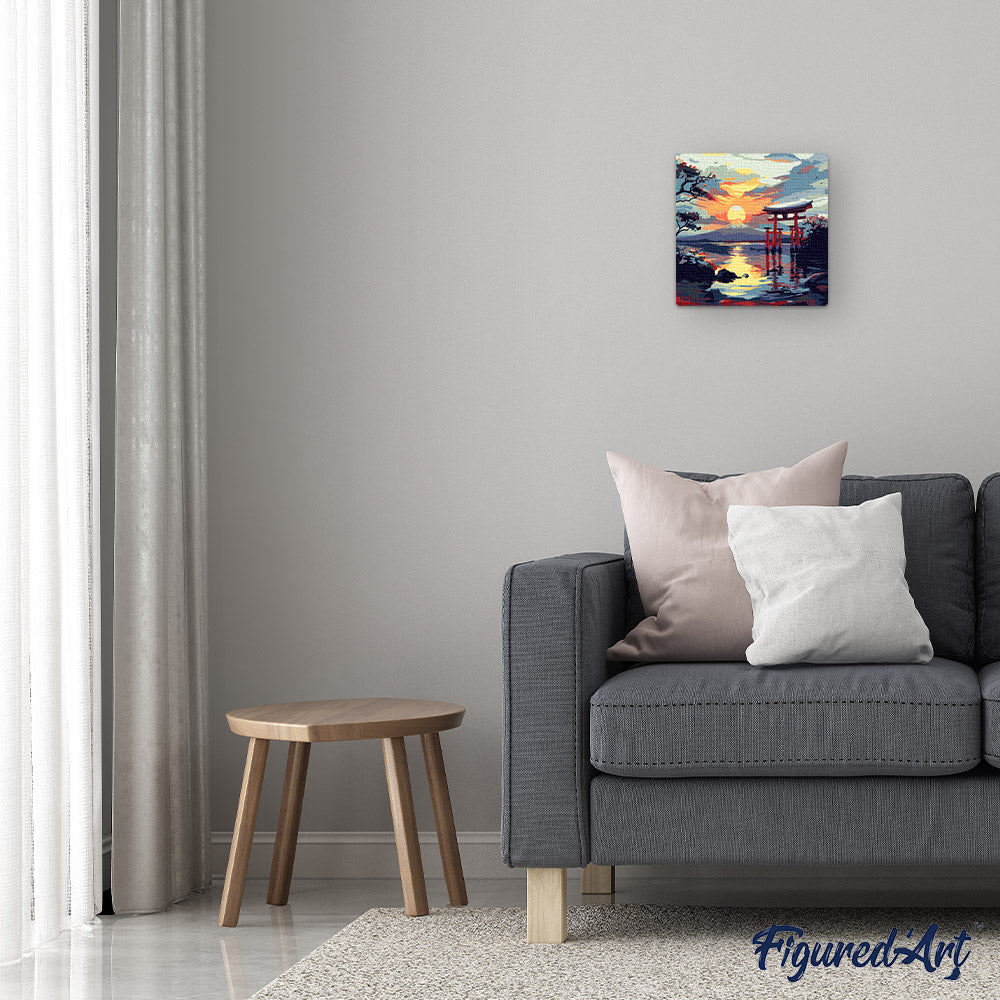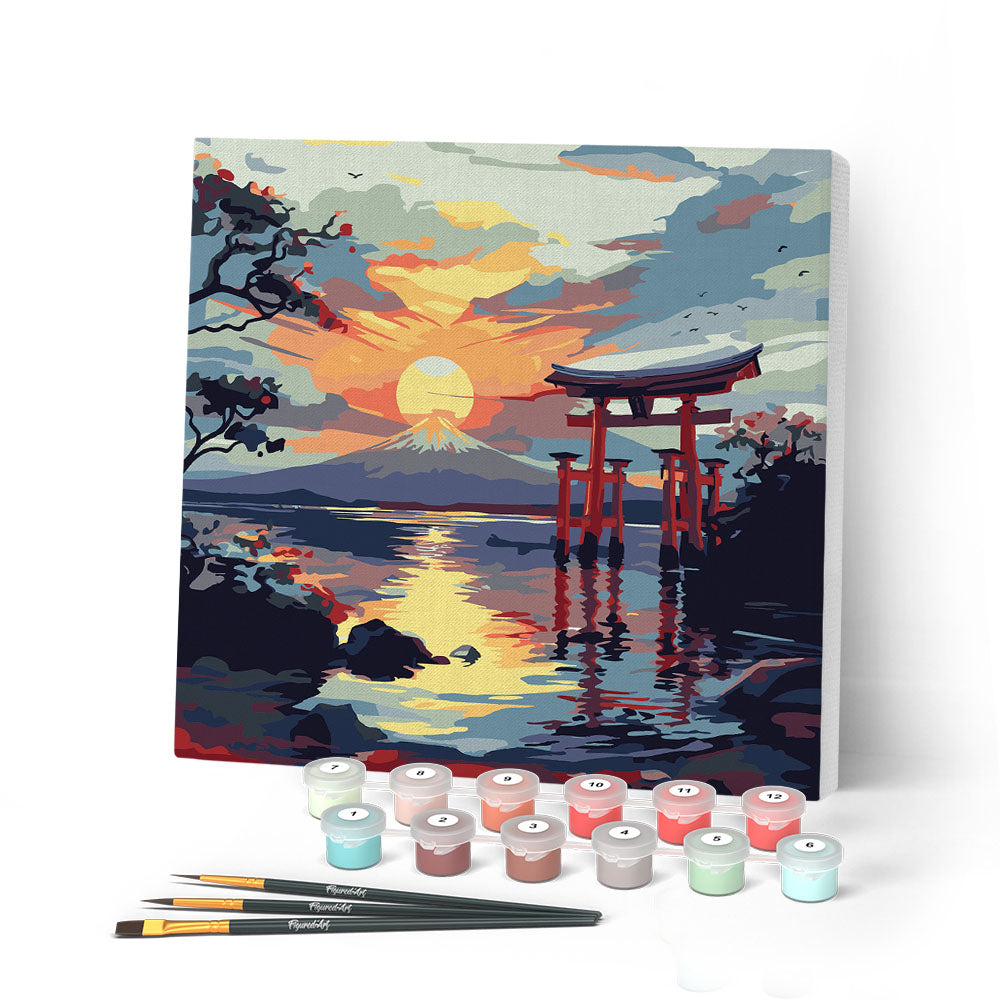 Modelo: Mini Pintura por Números 20x20cm con bastidor - Puerta Torii al Atardecer