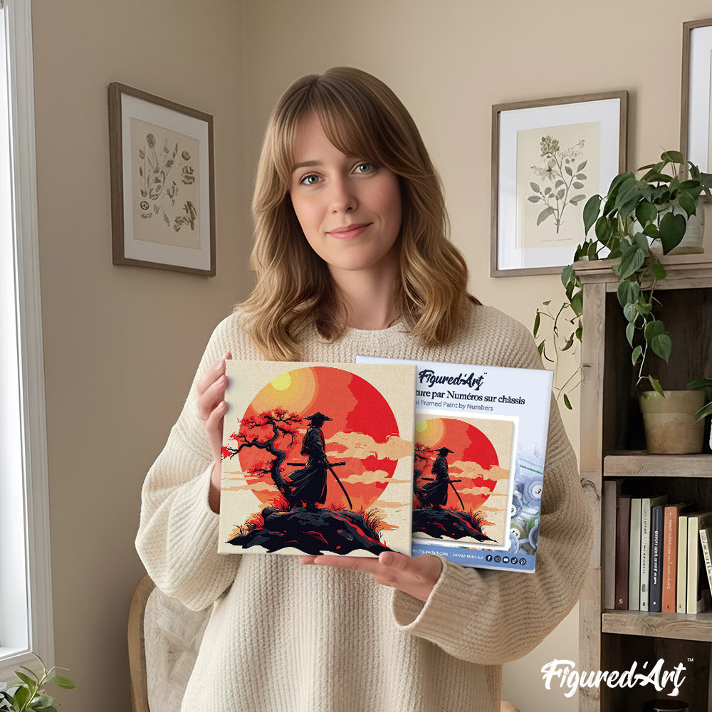 Modelo: Mini Pintura por Números 20x20cm con bastidor - Samurái al Atardecer