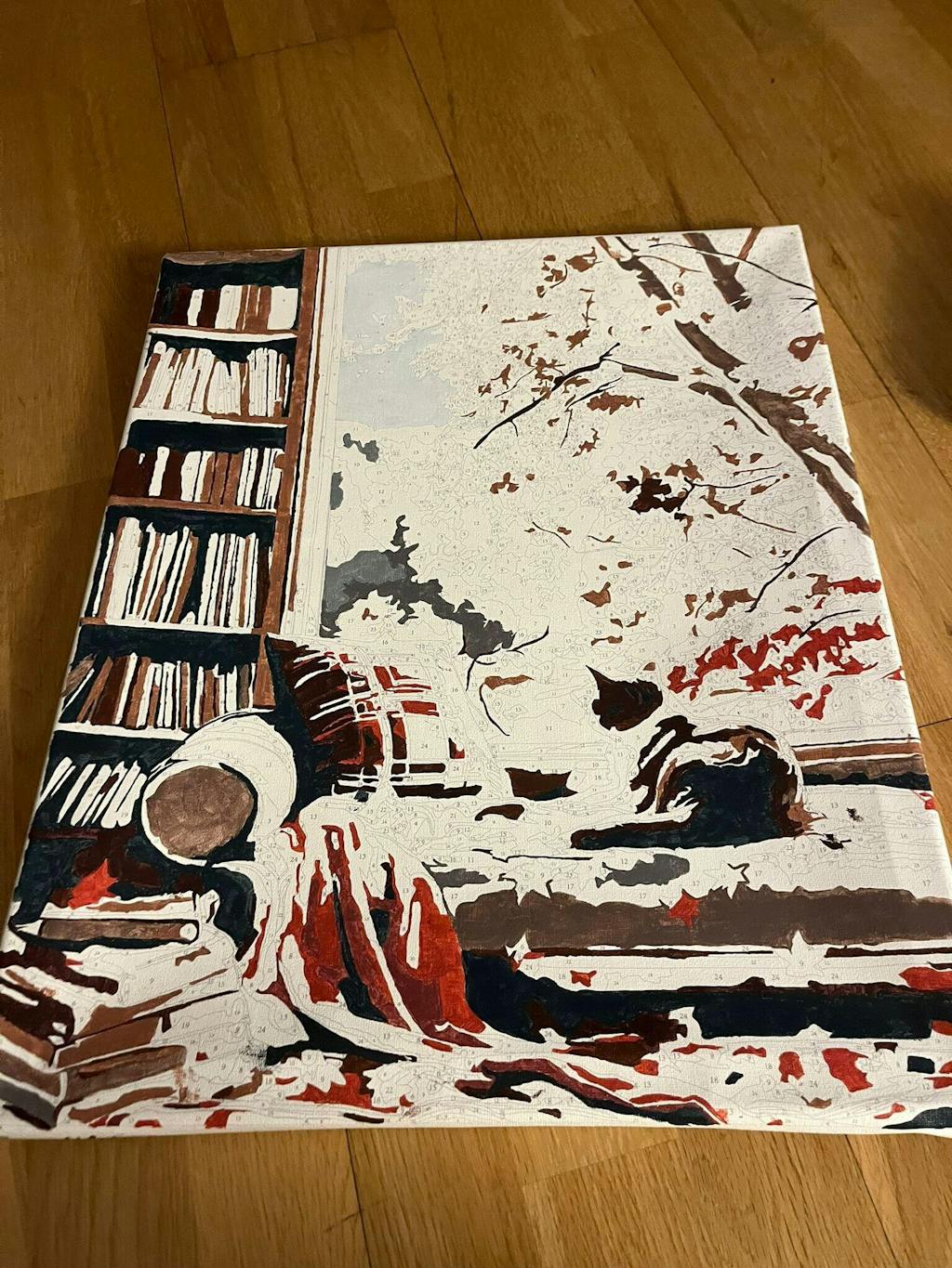 Kit completo de pintar por números con el lienzo estirado en un bastidor de madera ya montado. 100% listo para ser usado.