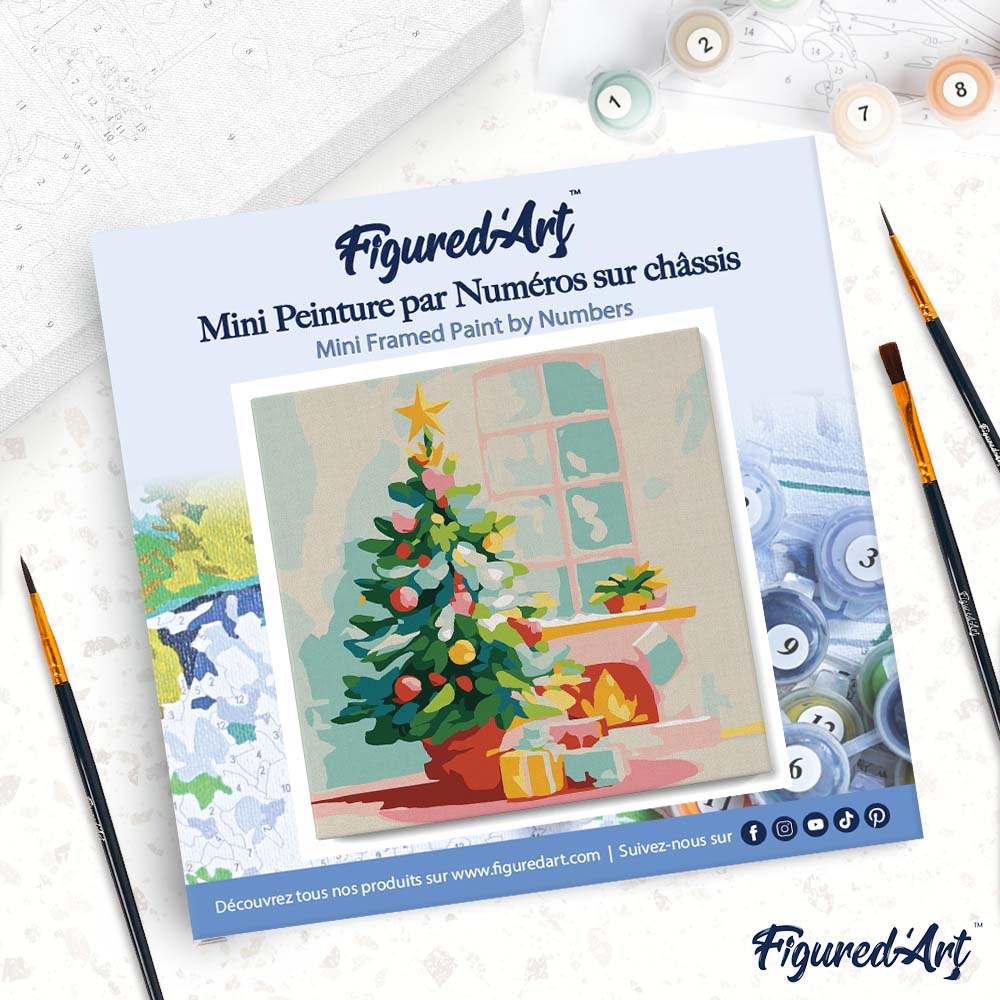 Modelo: Mini Pintura por Números 20x20cm con bastidor - Árbol de Navidad y chimenea