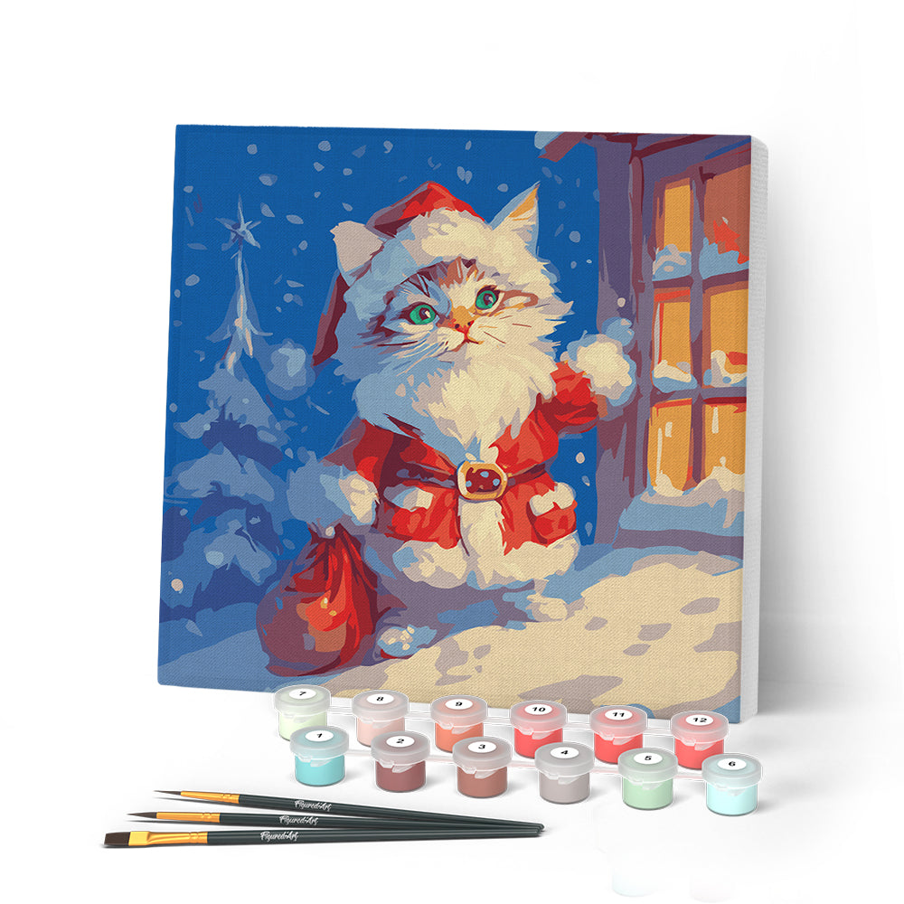 Modelo: Mini Pintura por Números 20x20cm con bastidor - Gatito de Papá Noel