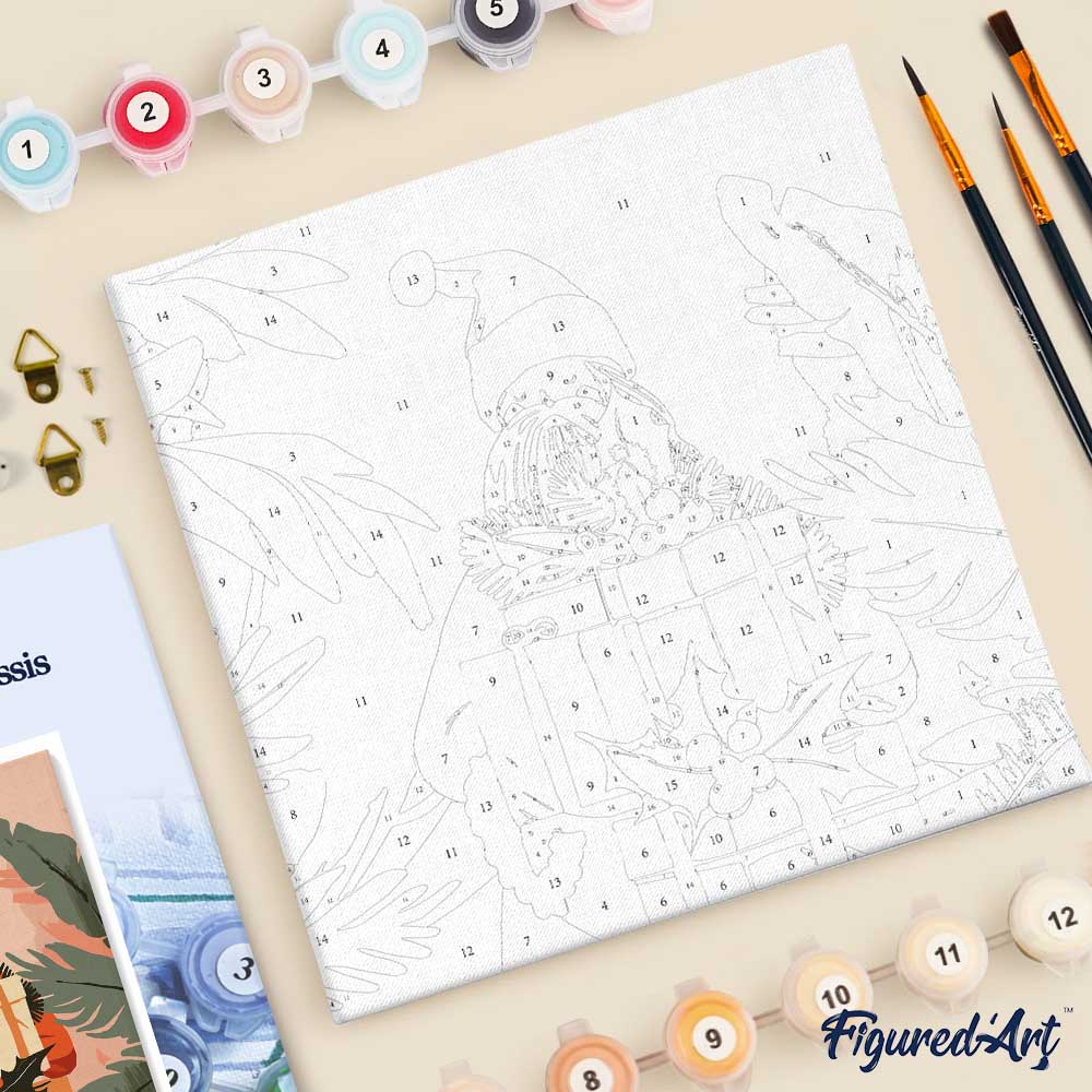 Modelo: Mini Pintura por Números 20x20cm con bastidor - Papá Noel con regalos