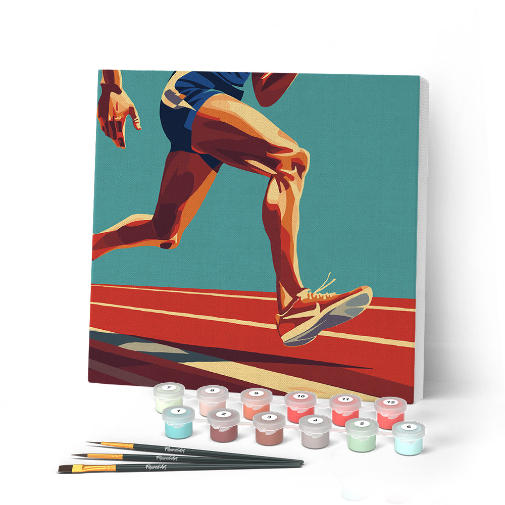 Modelo: Mini Pintura por Números 20x20cm con bastidor - Póster Deportivo de Atletismo