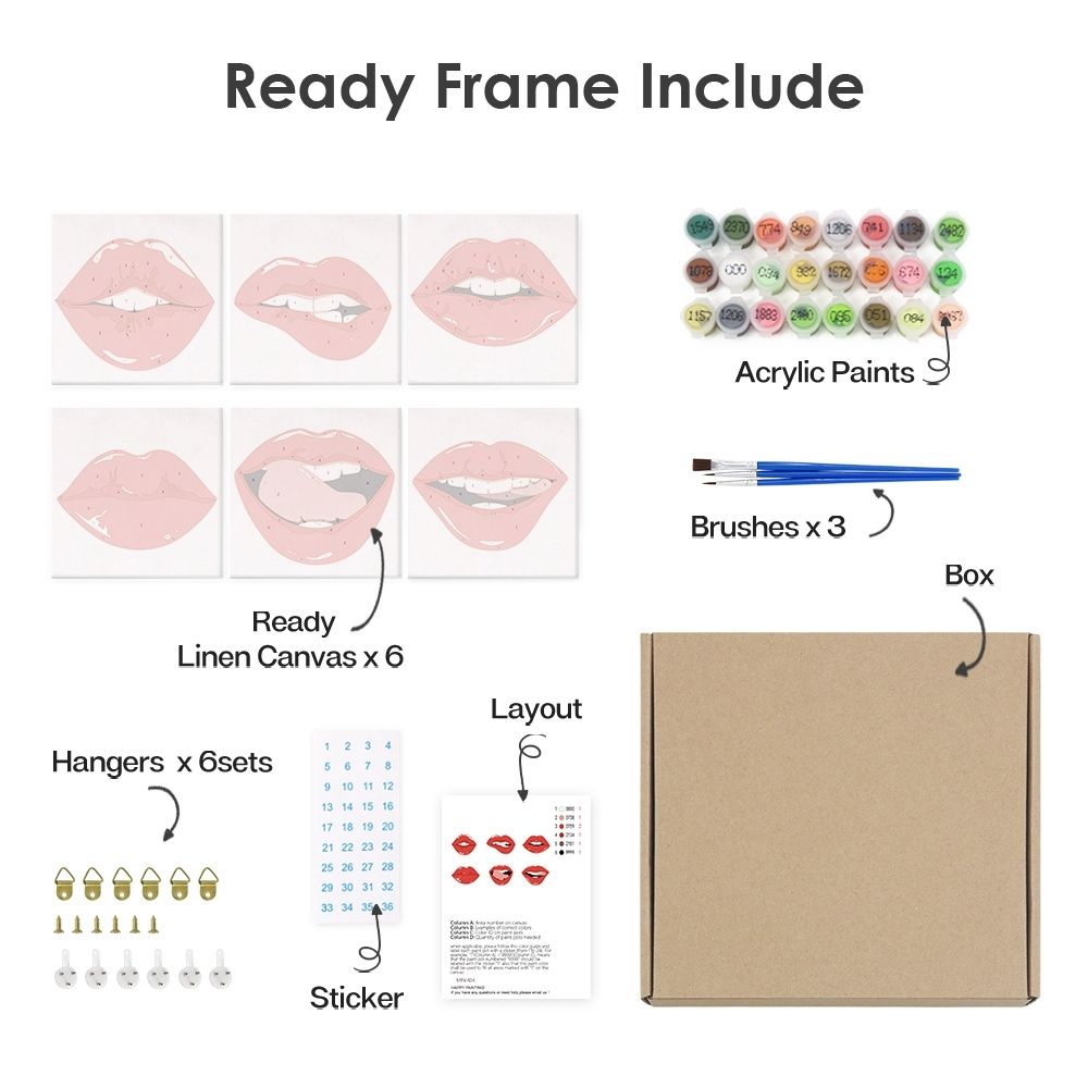 2) Recibirá un kit listo para usar que contiene el lienzo con las áreas numeradas, los potes de pinturas numeradas, pinceles y una imagen del resultado esperado para usar de guía. ¡Que comience el viaje!
