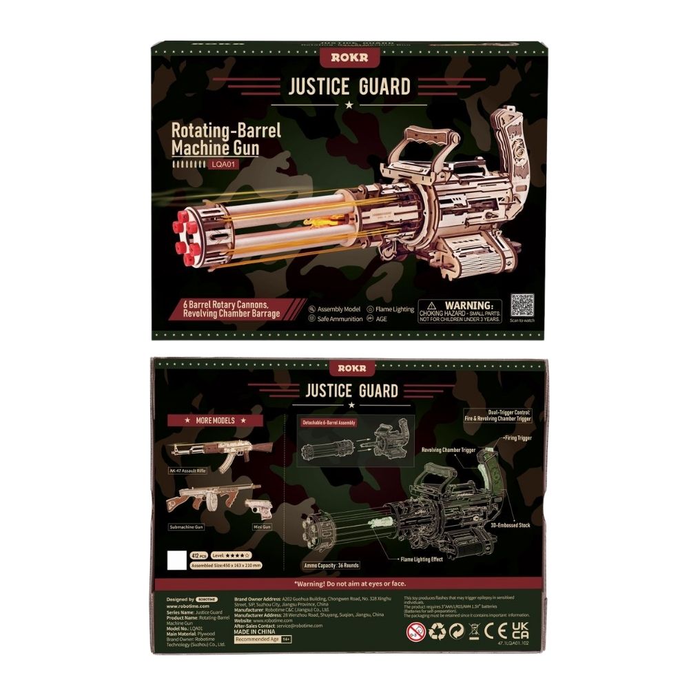 Este rompecabezas 3D de madera transforma la clásica ametralladora estilo Gatling en una construcción DIY dinámica. Con 412 piezas de madera cortadas con láser, ensamblarás seis cañones giratorios capaces de lanzar hasta 36 bandas elásticas, con acción mecánica suave e iluminación evocadora de efecto de llama. Inspirado en armas rotatorias legendarias, el diseño detallado combina ingeniería y juego, ofreciendo un desafío cautivador y una pieza de exhibición destacada que es divertida de construir e interactiva de disfrutar.