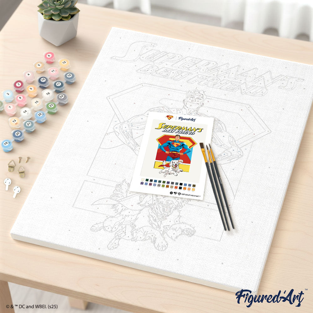 ✅ 1 lienzo de lino numerado con el diseño de Superman listo para pintar
