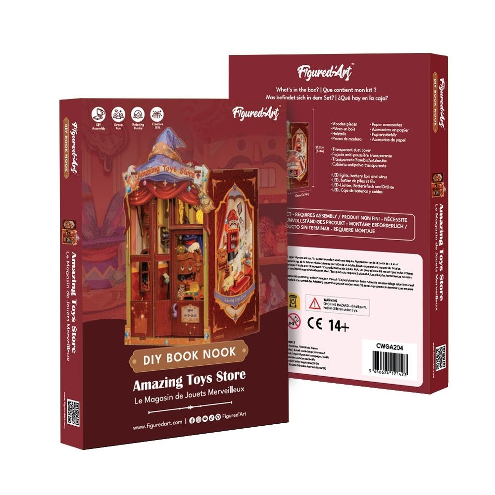 Añade un toque de asombro a tu casa con este encantador book nook. Móntalo, decóralo e ilumina tu propia juguetería en miniatura donde los sueños despiertan.