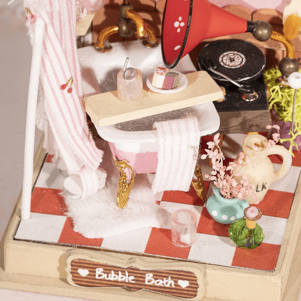 Esta miniatura de baño utiliza colores suaves y accesorios lindos para recrear un baño adorable. Relájate con este proyecto creativo y deja que este encantador baño ilumine tu espacio de vida.