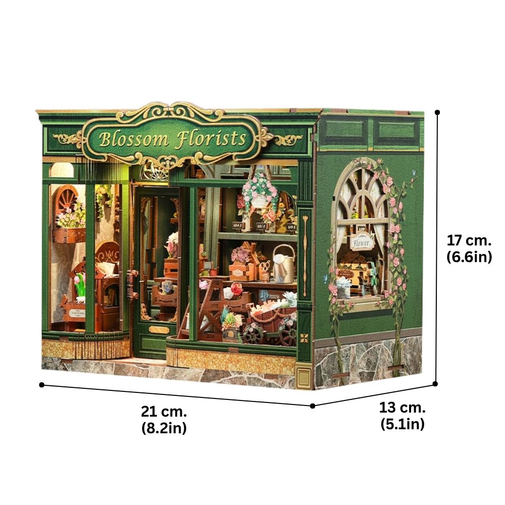 Floristería Blossom es una encantadora miniatura de tienda de flores llena de encanto y color. Al asomarte, te reciben pequeños ramos, delicados pétalos y exhibiciones cuidadosamente arregladas que capturan la belleza de una floristería en pleno florecimiento. Cada rincón está lleno de detalles alegres, desde jarrones hechos a mano hasta frondosa vegetación, creando una atmósfera cálida y estimulante. Esta encantadora escena en miniatura celebra la alegría de las flores frescas y aporta un toque de elegancia natural y felicidad a cualquier espacio.