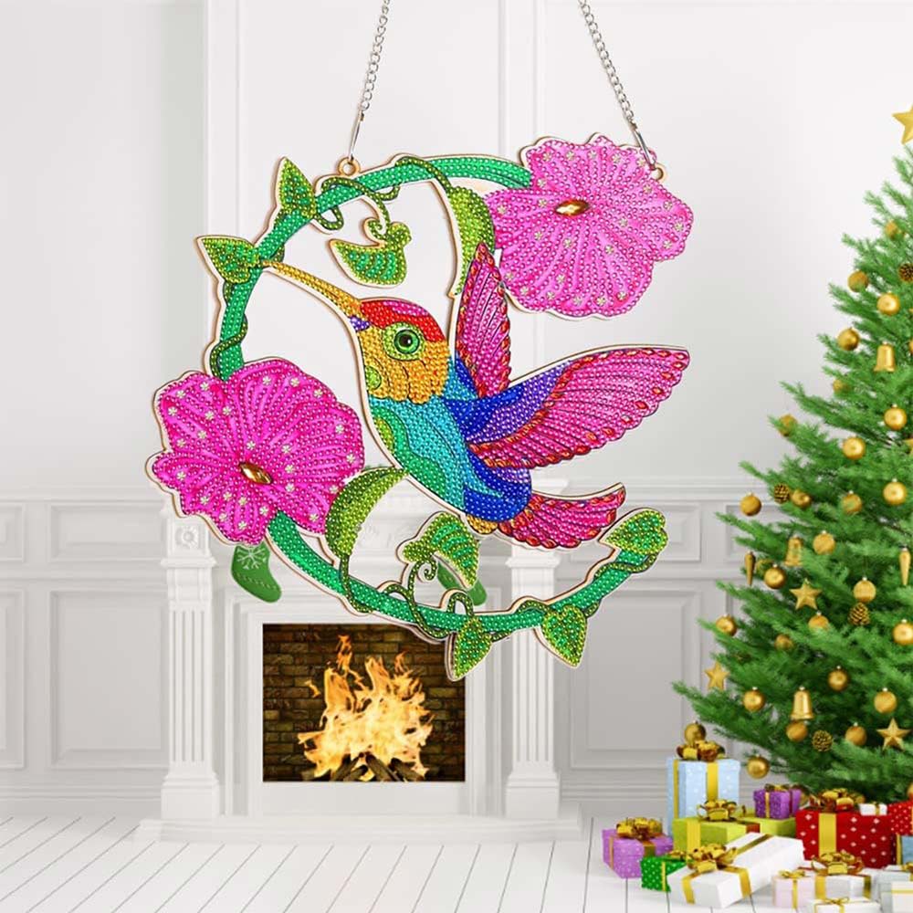 Colgante de Puerta Diamond Painting 5D Colibrí con Flores