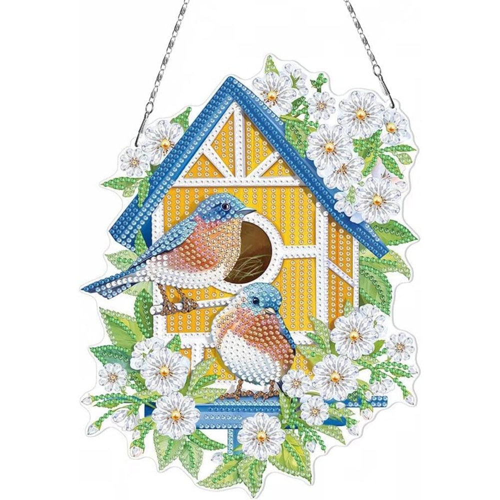 Colgante de Puerta Diamond Painting 5D con Casa de Pájaros Reversible