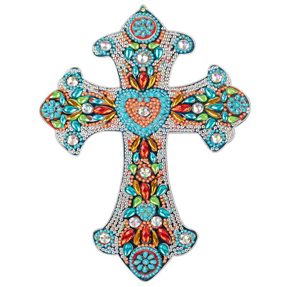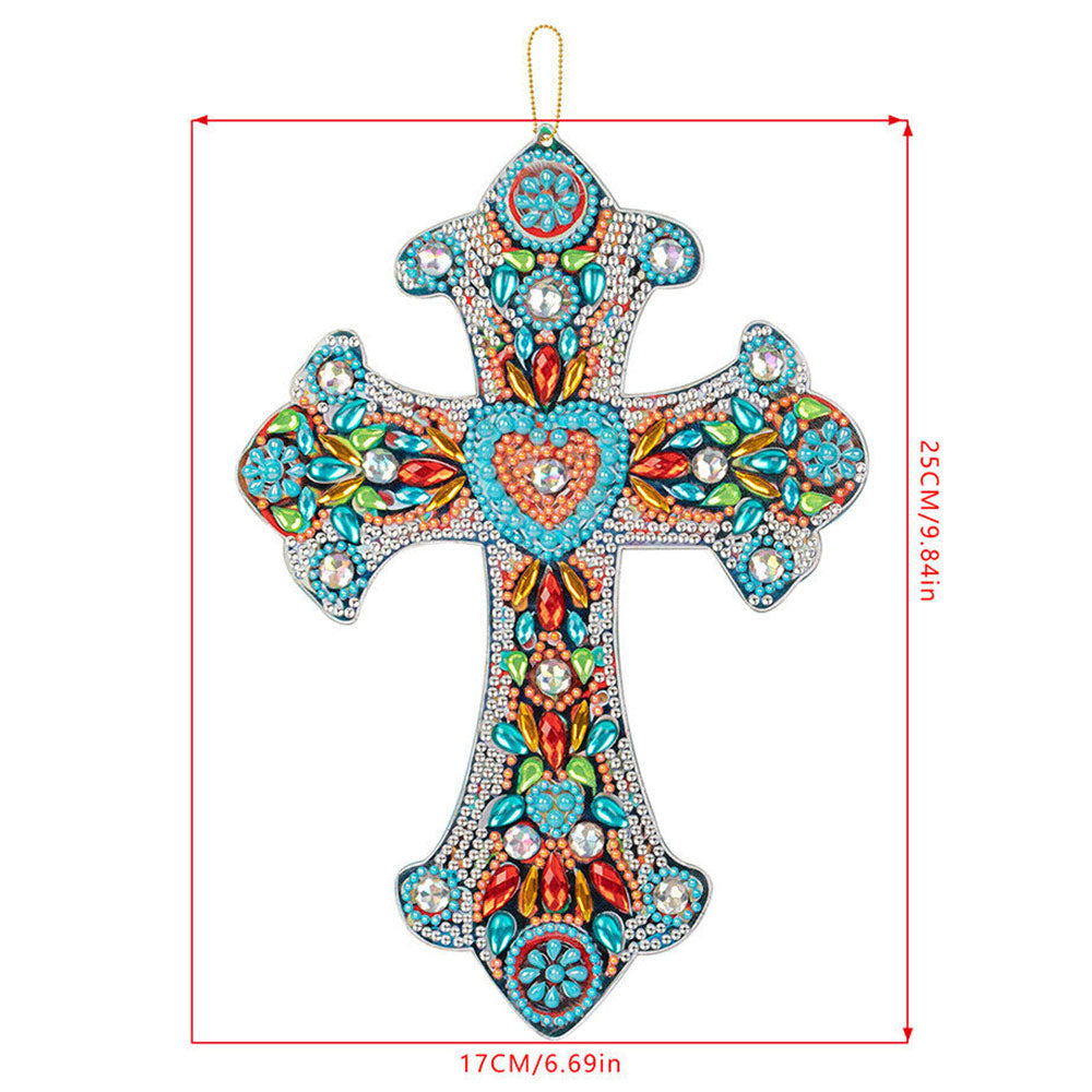 Colgante Decorativo Diamond Painting Cruz con Corazón