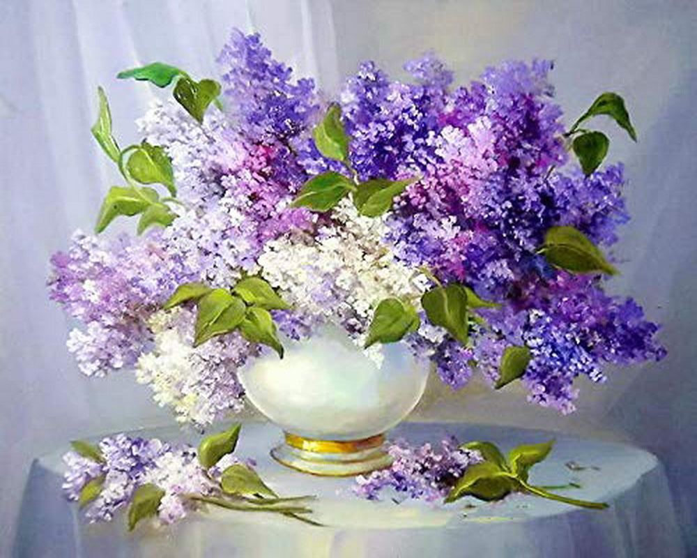 Modelo : Diamond Painting - Jarrón de flores en un mantel