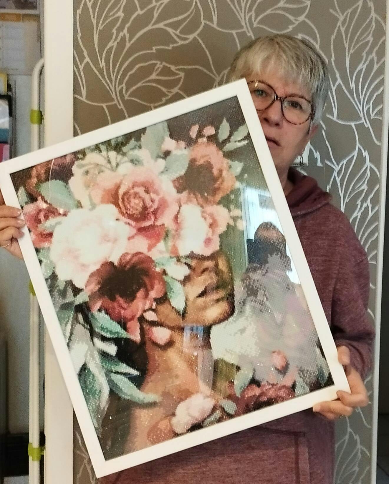 4) Una vez que haya terminado su bordado, presione ligeramente los diamantes con la mano o un libro para asegurar su retención final en el lienzo.