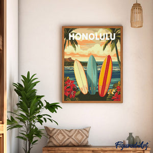 1 lienzo adhesivo de primera calidad, numerado según el motivo a crear y ya montado sobre un bastidor. Una placa de madera en la parte posterior de la lona proporciona una rigidez perfecta para aplicar los diamantes.