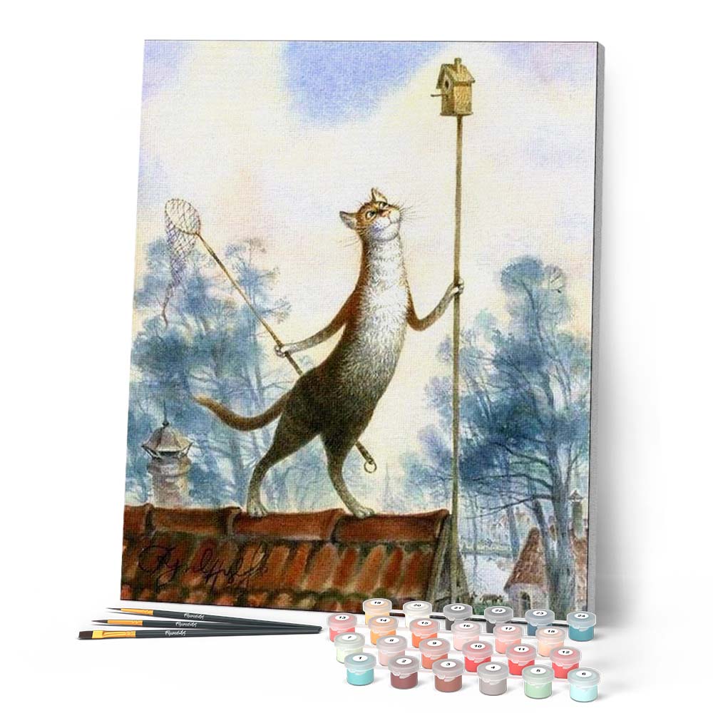 Pintar Por Números - Gato En Un Tejado - Figuredart - Animales Gatos