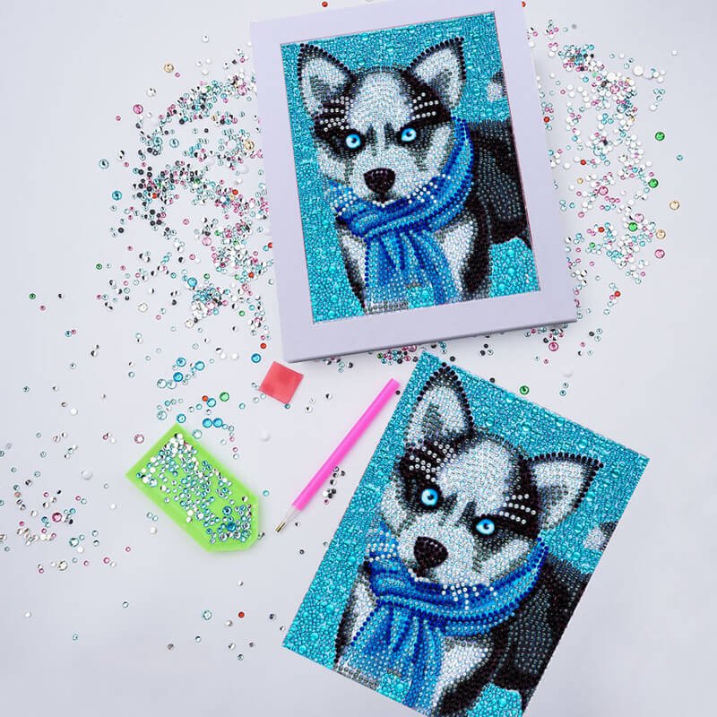 Kit Diamond Painting 5D con Diseño de Husky y Marco de Fotos