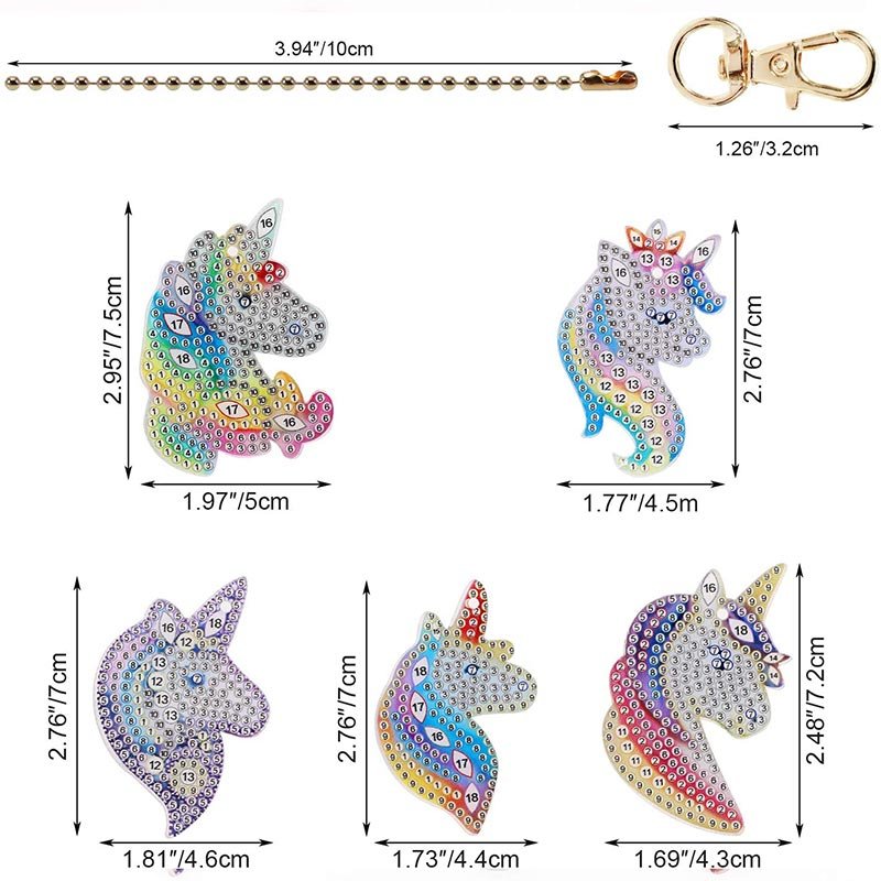 Llavero Diamond Painting 5D con Unicornios 5 Piezas