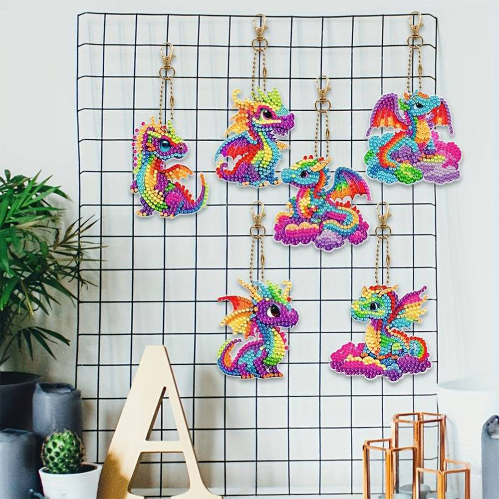 Llavero Diamond Painting 5D Dragón 6 Piezas