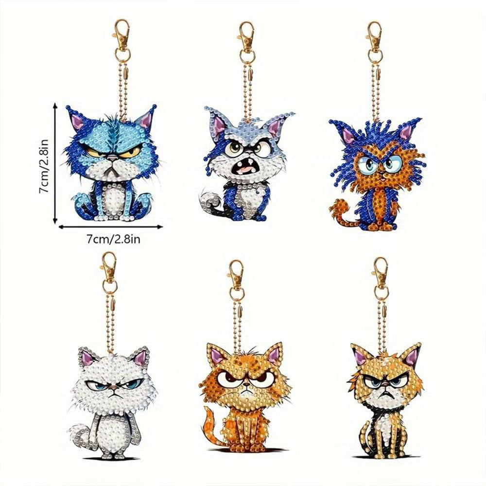 Llavero Diamond Painting 5D Gatos Traviesos 6 Piezas