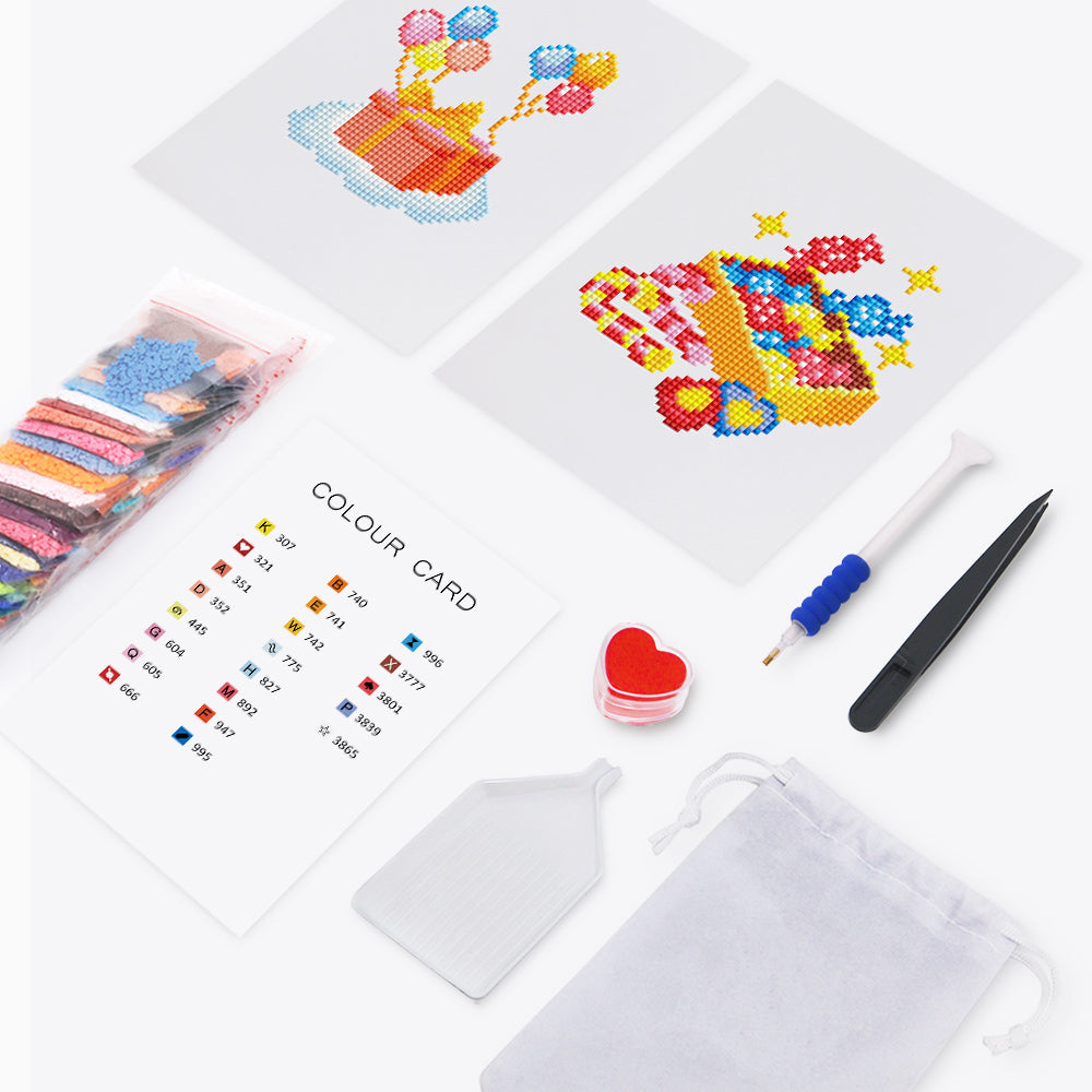 Mini Diamond Painting 15x20cm (2 piezas) - Cajas y Globos