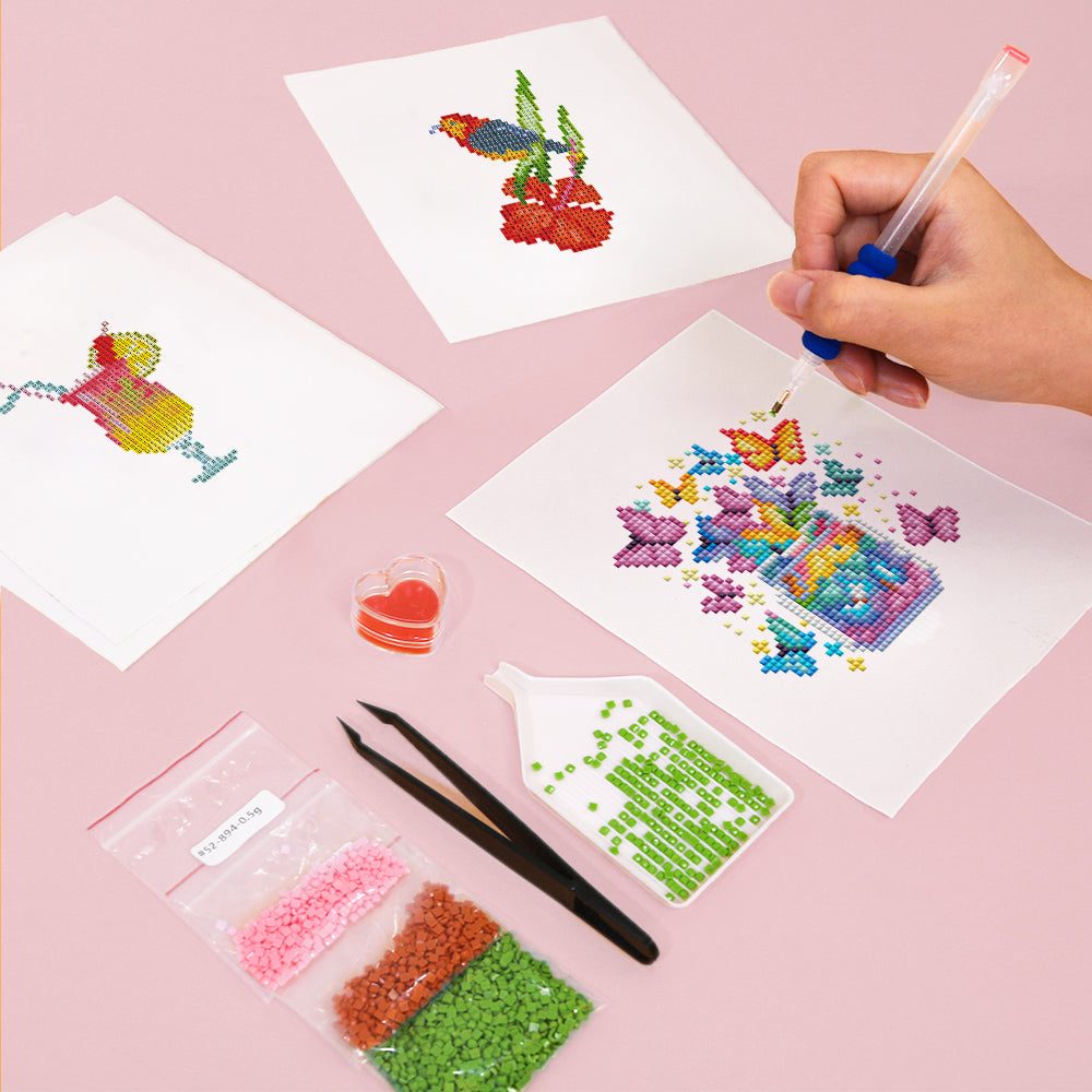 Mini Diamond Painting 15x20cm (2 piezas) - Mariposa y Pájaro