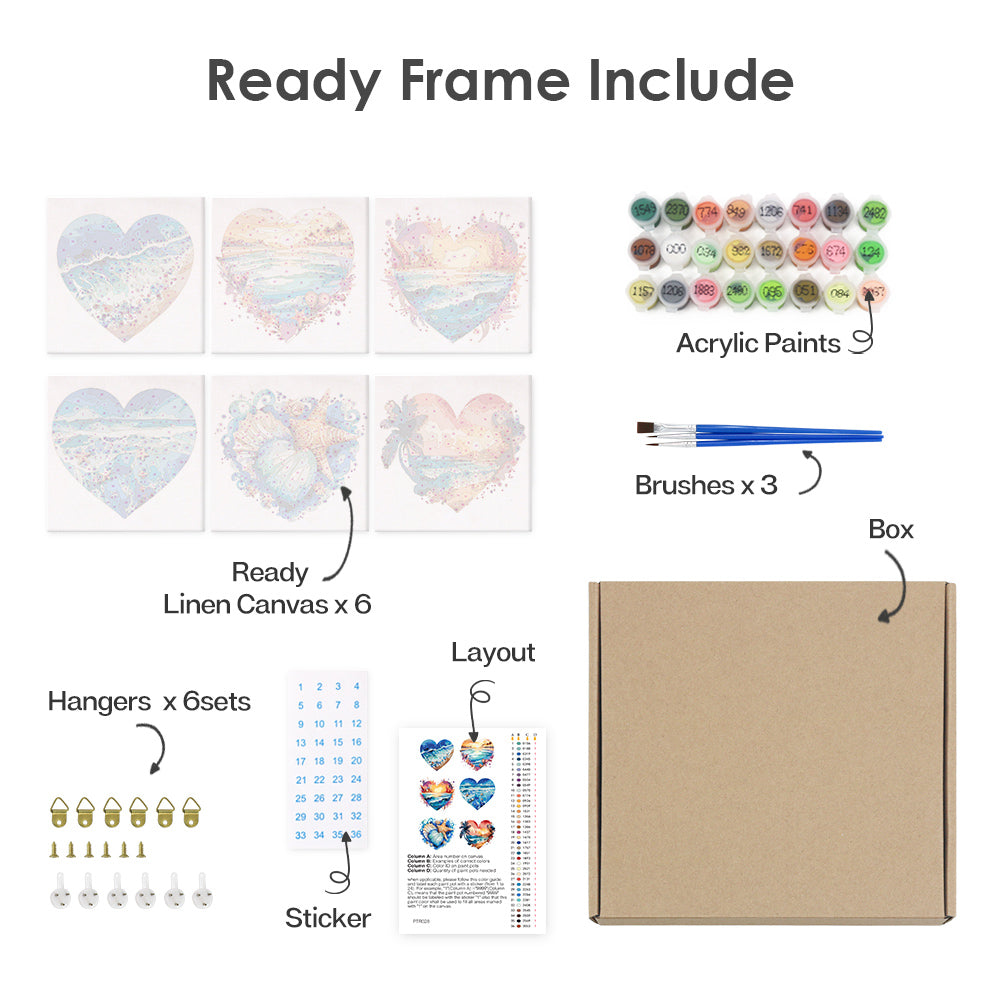2) Recibirá un kit listo para usar que contiene el lienzo con las áreas numeradas, los potes de pinturas numeradas, pinceles y una imagen del resultado esperado para usar de guía. ¡Que comience el viaje!